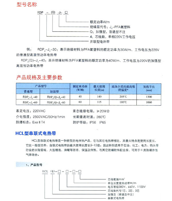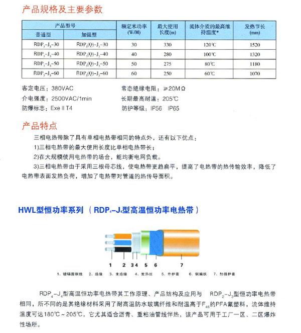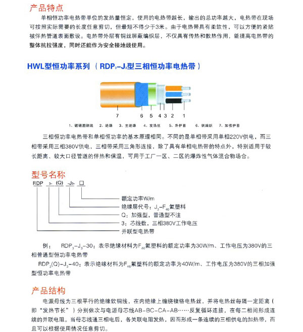 • 產品名稱:HWL型恒功率伴熱帶