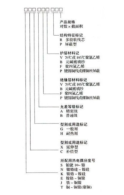 b)字母“X”表示延伸型補償導(dǎo)線(型別);